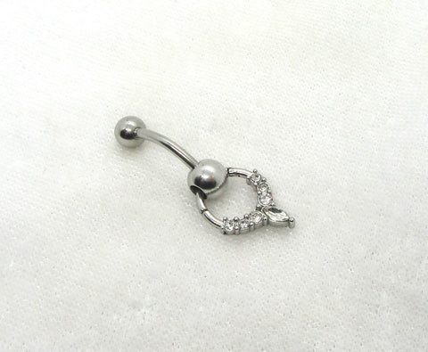 Marquise 14G Reverse Top Down Belly Ring Hoop Belly Piercing Reverse Belly Bar Barbell