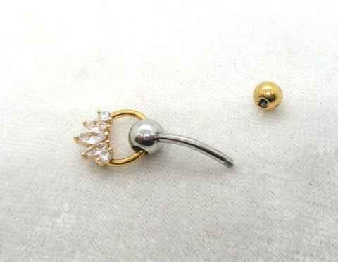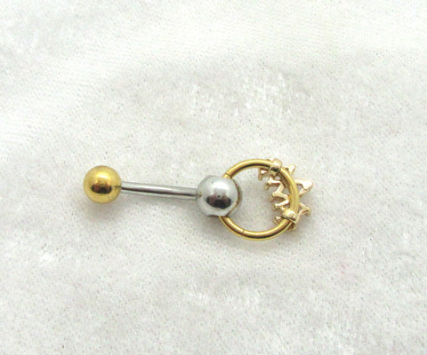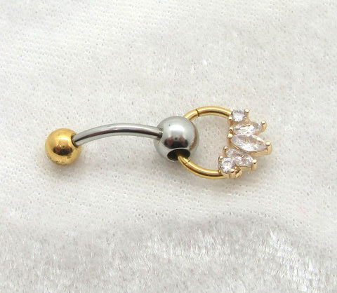 14G Reverse Gold Silver 2 Tone Top Down Belly Ring Hoop Belly Piercing Reverse Belly Bar Barbell