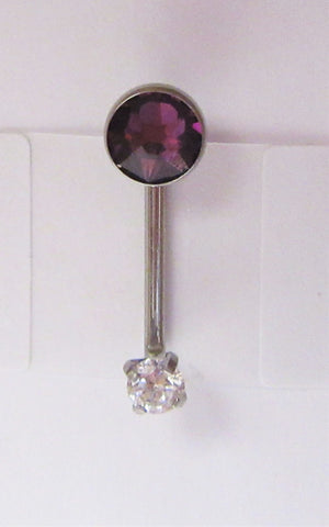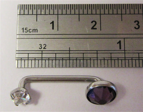 Internally Threaded Purple Clear Flat CZ Gem VCH Jewelry Clitoral Hood 14 gauge