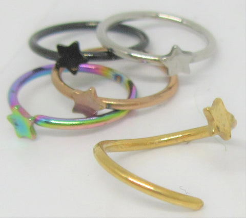 20G Star Hoop Rose Gold Multi Black Silver Nose Hoop Ring Nostril Hoop Ring Seamless Hoop 8mm Diameter 20 Gauge Nostril