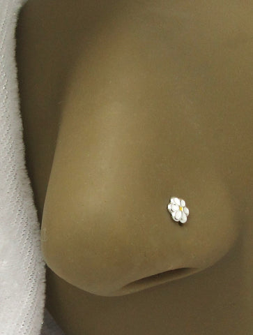 22G White Daisy Flower Nose Screw Stud Ring Sterling Silver 22 Gauge